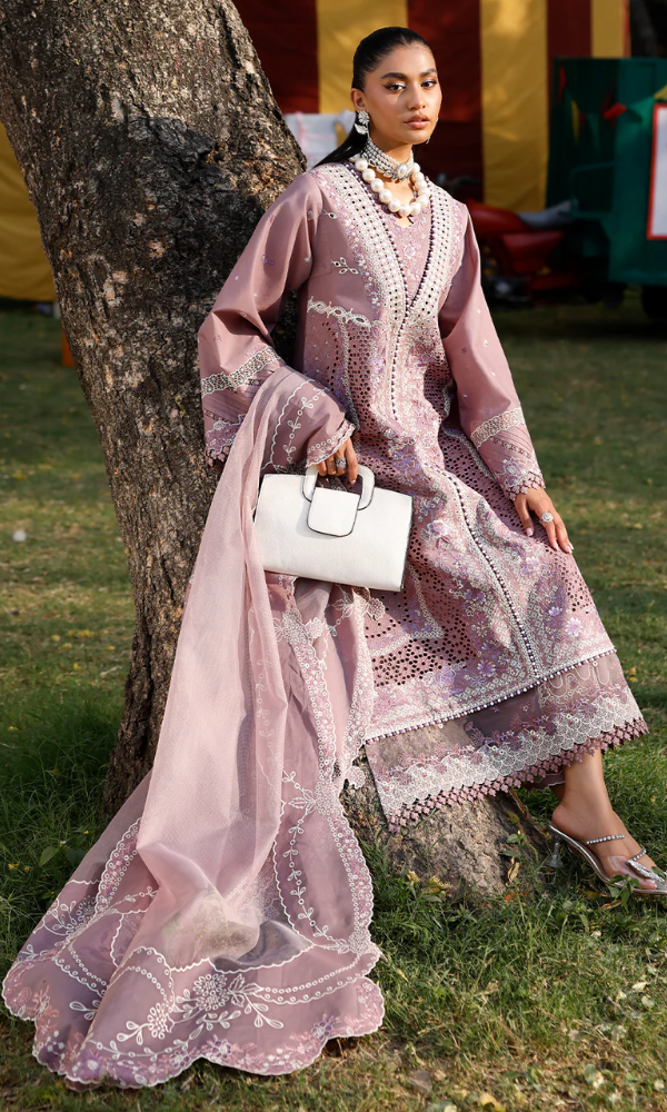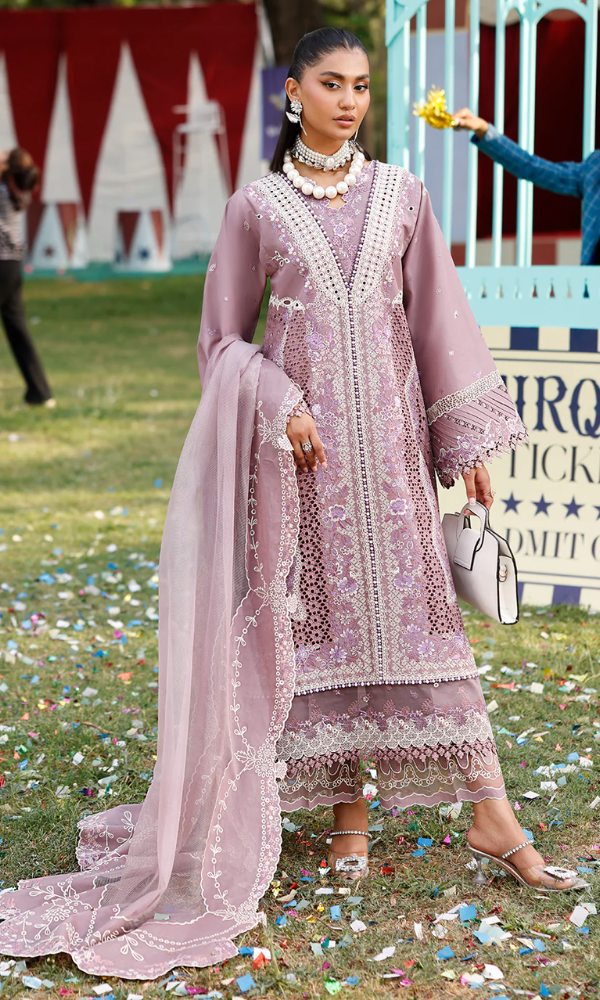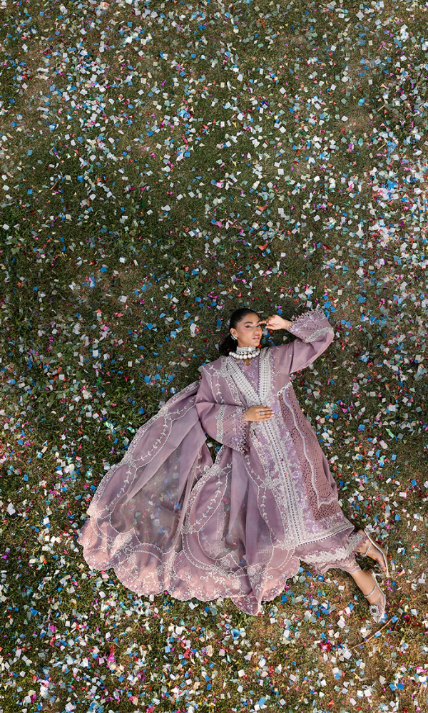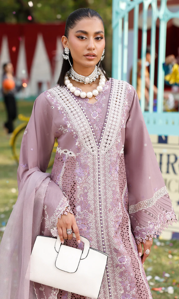 Unstitched 3 Piece Embroidered Chikn Kari RTW Dupatta Embroidered - PERIWINKLE