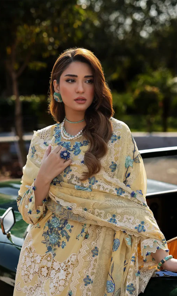 Embroidered Lawn Chikn kari Suit Unstitched 3 Piece Unstitched - Sasha - KS1110